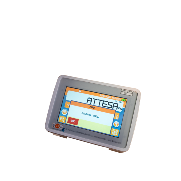 Visore del peso touch screen con luminosa interfaccia grafica che permette all’operatore di svolgere tutte le funzioni con estrema facilità con un tocco solo;
